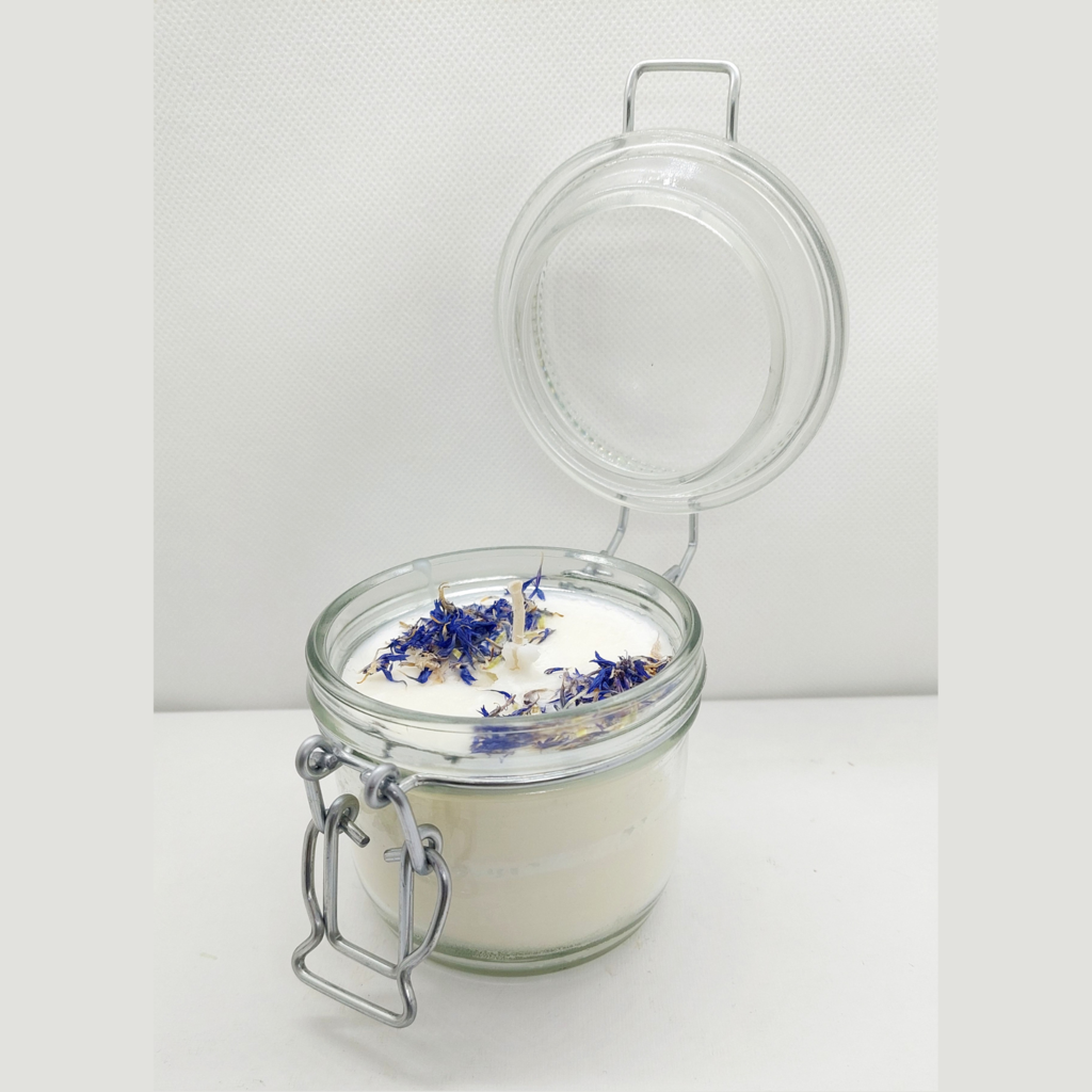 Handgemachte Heilkräuterkerze LEBENSFREUDE Diese Heilkräuterkerze ist keine Duftkerzen im klassischen Sinn. Sie besteht aus reinem Pflanzenwachs, ätherischen Ölen, Kräuterauszügen, Tinkturen, Kräutern und Blüten. Was sind Heilkräuterkerzen...? - Wie eine ganz feine, sanfte Räucherung. Die Kräuter und Blüten stammen aus eigenem oder biologischem Anbau - die ätherischen Öle sind 100% naturrein. Der Duft wird beim Abrennen nicht intensiver, durch das Feuer wird die Information der ätherischen Öle, Auszüge und Tinkturen freigesetzt – es ist wie eine ganz feine, sanfte Räucherung. DER DUFT Bergamotte - mit 100% naturreinen ätherischen Ölen. Dieser fantastische Duft zaubert ein Lächeln in dein Gesicht. Bergamotte ist ein Sonnenbotschafter, belebend, hellt die Stimmung auf, vertreibt Melancholie und schenkt Lebensfreude. TINKTUR Johanniskrauttinktur. EINSTREUUNG Kornblume blau. DIE BRENNDAUER Dank einer eigenen Mischung pflanzlicher Wachse mit Auszügen und Tinkturen hat diese Kerze eine besonders lange Brenndauer von bis zu 50 Stunden. 255ml Drahtbügelglas Hinweis: Dekoartikel, keine Arznei, nicht verzehren und nicht einnehmen – Kerze nie unbeaufsichtigt brennen lassen. Glas kann heiß werden, Untersetzer verwenden. nicht ganz ausbrennen lassen.