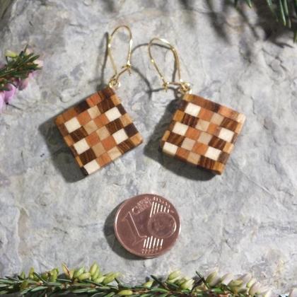 Diese wunderschönen und zugleich einzigartigen Ohrringe sind weltweit ein Unikat und gänzlich handgefertigt. In dieser Form und Holzzusammenstellung sind sie der Hingucker schlechthin.Damit sie angenehm und federleicht zu tragen sind, wurden sie sehr dünn gefertigt. Um das Holz so richtig strahlen zu lassen, wurde es geölt und danach eine gesundheits- und umweltunbedenkliche aber feuchtigkeits-, speichel- und schweißresistente Versiegelung aufgetragen und diese anschließend auf Hochglanz poliert. Verwendet wurden die Hölzer Nußbaum (Juglans regia), Ahorn (Acer pseudoplatanus), Magnolie (Magnolia), Zwetschke (Prunus domestica), Goldregen (Laburnum spp.) und Kirsche (Prunus avium).