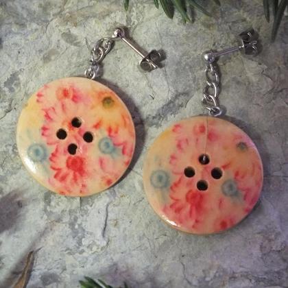 Diese wunderschönen und zugleich einzigartigen Ohrringe aus bemalten Holzknöpfen sind weltweit ein Unikat und gänzlich handgefertigt. In dieser Form und Zusammenstellung sind sie der Hingucker schlechthin. Damit sie angenehm und federleicht zu tragen sind, wurden sie sehr dünn gefertigt.