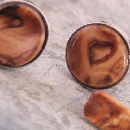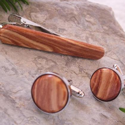 Set Krawattennadel und Manschettenknöpfe aus gestockter Birke