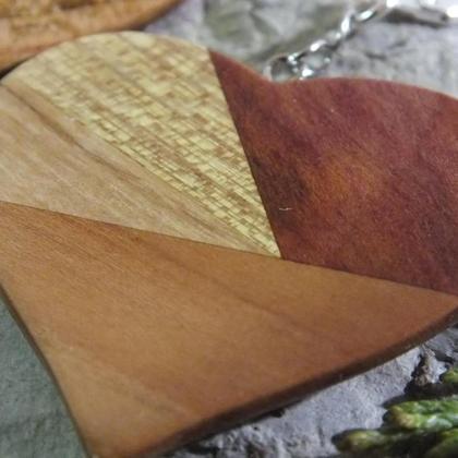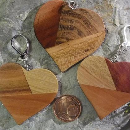Set Ohrringe und Anhänger Herz aus 3 Holzarten