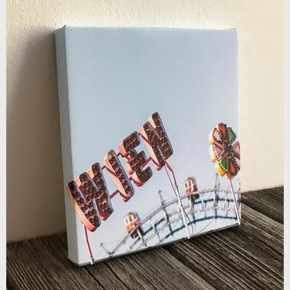 Fotodruck auf Leinwand. Aufgezogen auf 12 mm Sperrholz. Aufgenommen in 1020 Wien. Größe: 15 x 15 cm Loch auf der Rückseite zum Aufhängen an einem Nagel