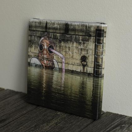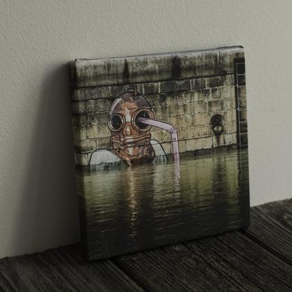 Fotodruck auf Leinwand. Aufgezogen auf 12 mm Sperrholz. Aufgenommen in 1020 Wien. Größe: 15 x 15 cm Loch auf der Rückseite zum Aufhängen an einem Nagel
