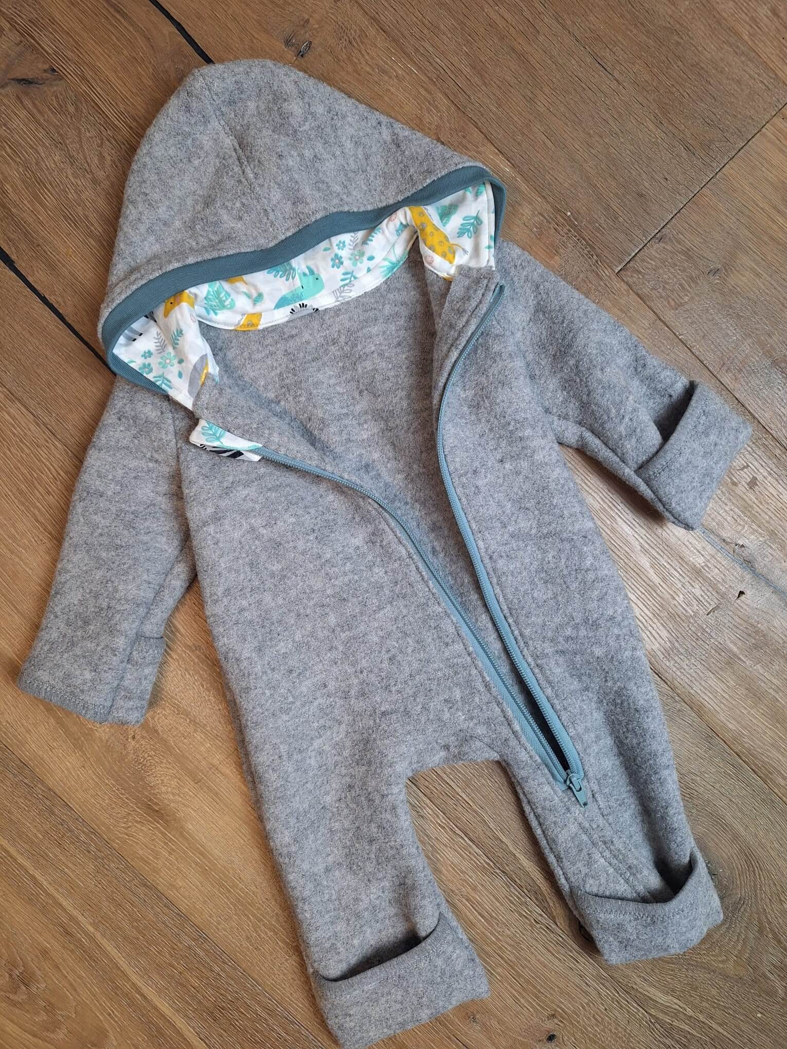 Grauer Walkoverall in Größe 56 mit Umschlagbündchen ungefüttert.