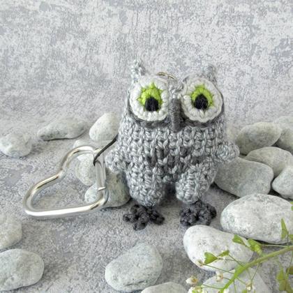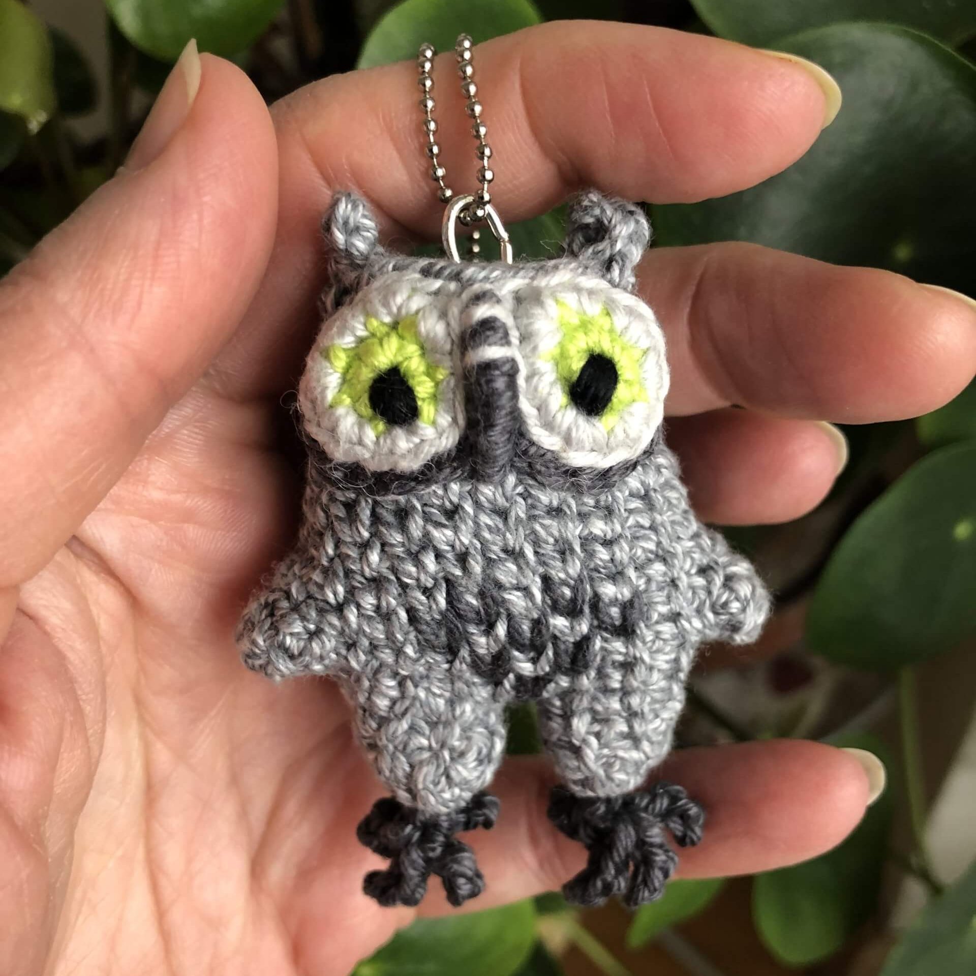 Eule Anhänger, wird auf Bestellung gemacht mit Schlüsselring und/oder Karabiner. Handlich gemacht als beständigen Begleiter. Kann als Taschenanhänger, Schlüsselhalter oder Mitfahrer verwendet werden, es gibt jede Menge Möglichkeiten für das Vögelchen um nützlich zu sein. Jetzt neu mit einer Kugelkette, die auch geöffnet und gekürzt werden kann. Maße: ca. 6 x 4,5 cm Material: Baumwollgarn, Füllwatte, Metall Jedes Stück wurde von mir kreiert und handgefertigt Mehr in meinem regionalis Shop :)