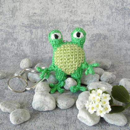 Frosch Anhänger, wird auf Bestellung gemacht mit Schlüsselring und/oder Karabiner. Handlich gemacht als beständigen Begleiter. Kann als Taschenanhänger, Schlüsselhalter oder Mitfahrer verwendet werden, es gibt jede Menge Möglichkeiten für das Tierchen um nützlich zu sein. Auch die Kugelkette kann geöffnet und gekürzt werden. Maße: ca. 6 x 4,5 cm Material: Baumwollgarn, Füllwatte, Metall Jedes Stück wurde von mir kreiert und handgefertigt Mehr in meinem regionalis Shop :)