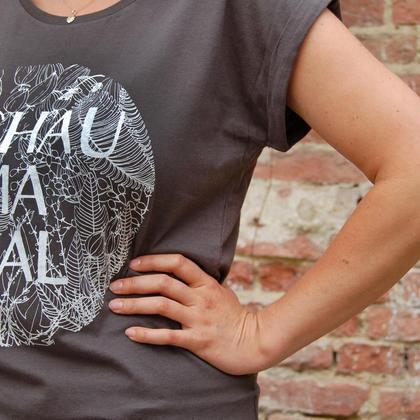 Wem liegt denn nicht ab und zu ein "Schau ma mal" auf den Lippen? Locker fallendes und gut sitzendes T-Shirt in Blaugrau aus 100% gekämmter Biobaumwolle mit "Schau ma mal" - Siebdruck in weiß. Das Shirt hat einen sehr weichen Griff, gekrempelte Ärmel, Rundhalsausschnitt und unten einen runden Saum. Das Motiv ist von loretta cosima handgezeichnet und handgedruckt in Wien. Das graue T-Shirt (Jersey 155 g/m² ) ist GOTS – zertifiziert und nach den Richtlinien der Fair Wear Foundation hergestellt. Waschempfehlung: auf links gedreht bei 30° waschen Stoff Farbe: Light Charcoal / Blaugrau Siebdruck Farbe: weiß Label: loretta cosima
