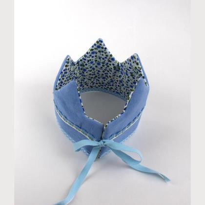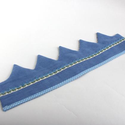 Schöne Geburtstagskrone für Kinder, die viele Jahre Freude bereitet. Eine Seite ist mit reinem Leinen und einer schönen Blumenborte genäht, die andere mit vielen kleinen blauen Blümchen darauf. Die Krone kann natürlich auf beiden Seiten getragen werden, sie ist aus reinem Leinen, bzw. Baumwolle und trägt sich sehr angenehm. Im Preis inbegriffen ist eine Zahl nach Wahl. Bei Kauf bitte die Zahl und die gewünschte Farbe angeben. Danke!