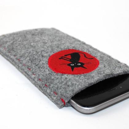 Schöne Handyhülle aus 4mm dicken, reinem Wollfilz Schütz das Handy in der Manteltasche ebenso wie in der Handtasche oder im Autoseitenfach. Die Hülle kann auch sehr gut als Brillenetui verwendet werden :-) Das Motiv wird appliziert und die Tasche wird von mir mit der Hand mit Perlgarn zusammengenäht. Größe: 16x10 cm Außenmaß - wenn nicht anders gewünscht