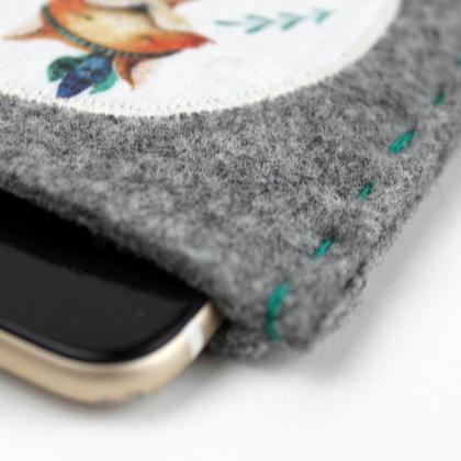 Schöne Handyhülle aus reinem Wollfilz, 4mm dick. Schützt das Handy oder die Brille sicher vor Kratzern und Stößen. Beides kann schnell und leicht entnommen werden Der süße Fuchs wird von mir mit der Nähmaschine appliziert, die Hülle nähe ich mit der Hand mit extra festem Perlgarn zusammen, oben beim Einschub verstärke ich die Seitennähte nochmal extra. Die Größe wird an das gewünschte Mass angepasst. gerne kann ich auch einen Namen aufsticken Größe: 16x10 cm Außenmaß - wenn nicht anders gewünscht Sonst bitte die Handytype angeben. Danke!