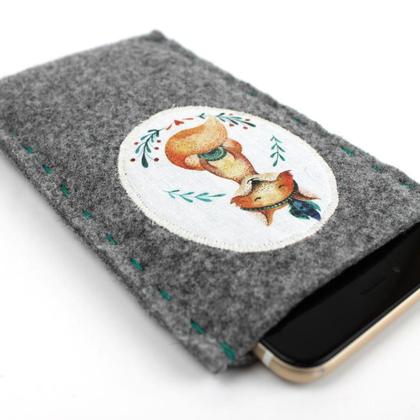 Handyhülle, Brillenetui aus Wollfilz, mit Fuchs
