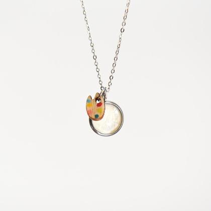 Ein Neustart. Ein langer Atem, mit allem Möglichen zwischendrin. Jede Begegnung, jedes Wort, jedes Gefühl, jeder Gedanke, jede Angst. Ein Neubeginn, mittendrin, zwischen dichten Seiten, ein weißes Blatt Papier. Und hier, das sind deine Farben, ein Geschenk. Viel Spaß damit, viel Glück und bis bald du lieber Wirbelwind. Die kleine Holzpalette ist in Wien hergestellt und von Hand bemalt – jede sieht ein bissi anders aus. Mini Anhänger: 1cm ø feine Edelstahlkette: ca. 42cm lang (+4cm Verlängerungskette) Verwendete Metalle: Edelstahl, Holz. Achtung, der Anhänger ist nicht wasserfest. Die Kette kommt hübsch verpackt in einer Schmuckschachtel aus Recyclingkarton.