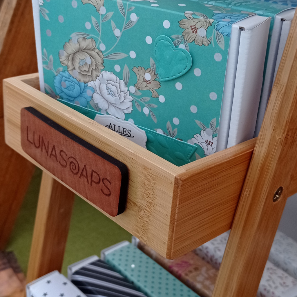 In dieser personalisierbaren Geschenkbox befinden sich sechs verschiedene Duftseifen aus unserem Sortiment, verpackt in einer handgemachten Papierhülle, die nach Wunsch oder Anlass individuell gestaltet wird. WALDGEIST Seife TRAUMSCHAUM Seife RINGELBLUMEN Seife oder LÖWENZAHN Seife LAVENDEL SOLESEIFE ROSEN SEIFE oder ROSENROT Seife ORIENTZAUBER Seife Alle Lunasoaps sind vegan und palmölfrei! Die Proben sind in umweltfreundlichem, kompostierbaren Zellglas in einem weißen Geschenkkarton verpackt. Abfüllgewicht pro Probe 35 g, Gesamtgewicht 210g