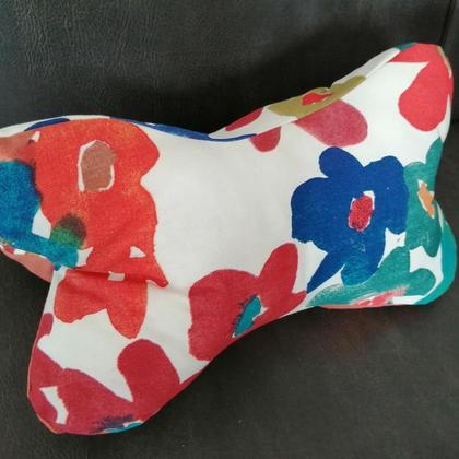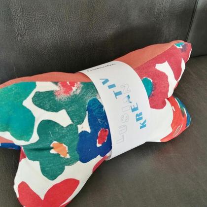 Bequemes Nackenkissen zum Lesen, Fernsehen oder zum Relaxen am Sofa. Man kann es auch unterstützend im Rücken platzieren, oder auch das Buch darauf legen, wenn man es nicht halten will oder in Bauchlage liest. Auch auf Reisen ist der Leseknochen im Zug, Bus, Auto oder Flugzeug toll einsetzbar. Sogar für Seitenschläfer ist es optimal für die Knieablage. Der Leseknochen kommt mit Beschreibung und Pflegehinweis. Material: 100% Baumwolle Füllmaterial: 100% Polyester Zwei Seite mit Blumenmuster und eine unifarben in rostrot.