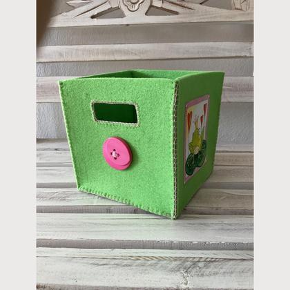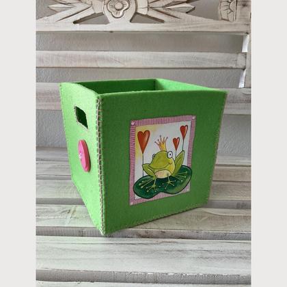 Aufbewahrungsbox aus Filz grün mit Frosch