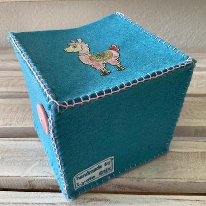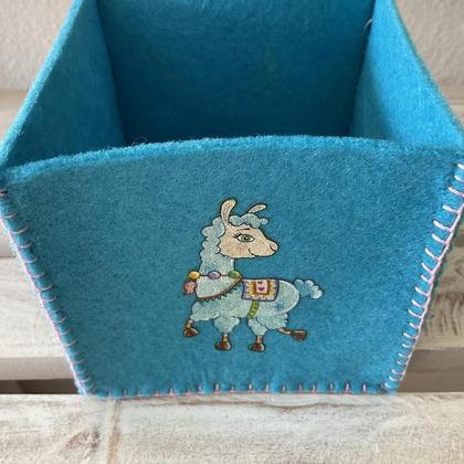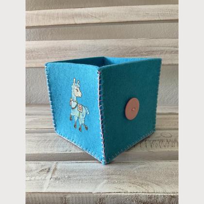 Aufbewahrungsbox klein aus Filz türkis mit Lama