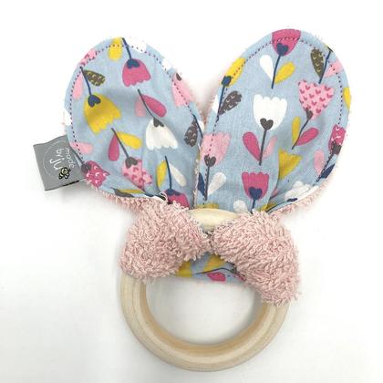 Greifling für Babies Natur- Holzring mit Stoff/Frottee-Ohren (100% Baumwolle) in 1 Ohr ist eine Knisterfolie eingearbeitet Ein perfektes kleines Geschenk an frisch gebackene Eltern! Die Ohren sind abnehmbar und somit auch waschbar! (Durchmesser Holzring ca. 7cm)