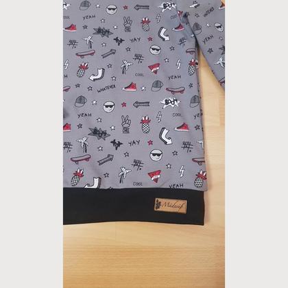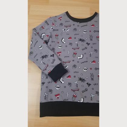 Pullover ist aus grauem Print-Sweatstoff Sweatstoff ist aus 100% Baumwolle bei 30°C waschbar, nicht in den Trockner Handmade