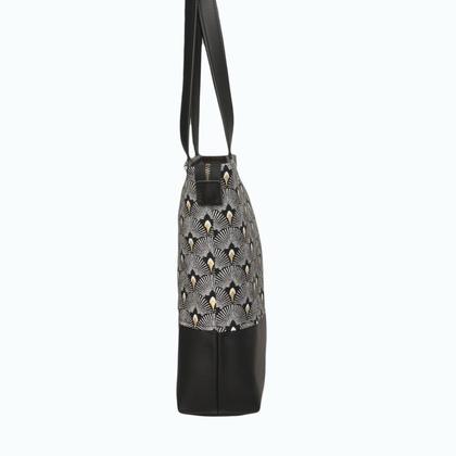 Die Tasche hat einem Lederboden aus Glattleder. Der Oberstoff ist aus strapazfähigen Jaquardstoff (45 % Polyester, 35% Acryl und 20 % Baumwolle). Die Lederriemen sind 68 cm lang und 25 mm breit. Wahlweise können sie länger oder kürzer gearbeitet werden. Die Tasche ist mit schwarzem Innenfutter ausgestattet. Das Innenfutter hat eine Reissverschlusstasche (23x20 cm) und 3 weitere Fächer. Maße: 30x39x9 cm 430 g Hergestellt in einer kleinen Werkstätte in St. Georgen am Walde.