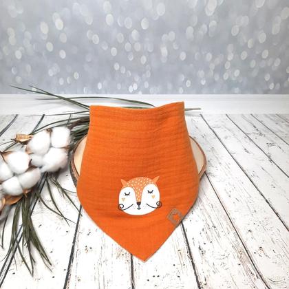 Musselin Dreieckstuch zum Wenden 2 – 4 Jahre orange, natur mit Fuchs