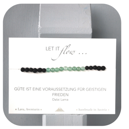 //Lava — Aventurin Armband// . *HALBEDELSTEINE* nehmen einen positiven Einfluss auf deine Energiezentren - den Chakren. . *LAVA* stärkt dein Urvertrauen und verwurzelt dich mit jedem deiner Schritte tief mit der Erde. . *AVENTURIN* soll vor seelischen Spannungen schützen, Gelassenheit, Mut und Optimismus fördern und die Lebensfreude steigern. . Da dieses Armband aus Naturmaterialien besteht, kann es zu leichten Farb- und Größenvariationen kommen. - es ist somit einzigartig! . Perlengröße: 4mm . Armbandgröße: unisize