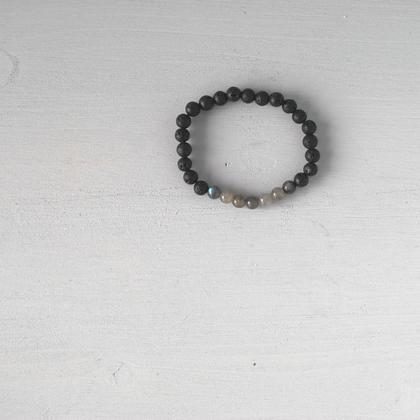 //Lava — Labradorit Armband// . *HALBEDELSTEINE* nehmen einen positiven Einfluss auf deine Energiezentren - den Chakren. . *LAVA* stärkt dein Urvertrauen und verwurzelt dich mit jedem deiner Schritte tief mit der Erde. . *LABRADORIT* soll negative Energien beseitigen, Realitätssinn und Intuition schärfen und die Fantasie fördern. . Da dieses Armaband aus Naturmaterialien besteht, kann es zu leichten Farb- und Größenvariationen kommen. - es ist somit einzigartig! . Perlengröße: 6mm . Armbandgröße: unisize