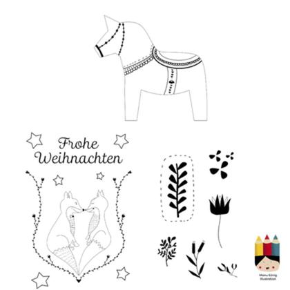 Ich habe in den letzten Tagen meine Ausmalbilder zu Fenstermalvorlagen umgewandelt. Und was soll ich sagen: Verdammt, macht das Spass. Ich habe die Bilder einfach gehalten, damit auch Kinder mitzeichnen können. Ich habe extra ein Bild mit Mustern dazugeben, die kannst du vergrössern, verkleinern und jedes Element einsetzen, wo und wie du es möchtest. Damit kannst du dir deine ganz eigenen Lebkuchenhäuser und Lebkuchen gestalten. Alle Motive sind von mir handgezeichnet. Aus Platzgründen kann ich hier nicht alle 16 Bilder zeigen, aber ihr könnt gerne auf meinem Instagramprofil manukoenig_illustration oder auf meiner Homepage www.manukoenig.at alle ansehen. Hier findest du 16 Fenstermalvorlagen in den Maßen A1, A2, A3 und A4. Für die Bilder benötigst du: A1: 8 Blatt Papier A2: 4 Blätter A3: 2 Blatt Papier A4: 1 Blatt Papier Damit du weisst wie gross die Bilder sind, liste ich sie dir hier extra auf. 1) Weihnachtskugel mit Vogel A1: 84,1 cm x 59,4cm 2) Dalepferd A3: 42cm x 29,7cm 3) Fuchsliebe A3: 42cm x 29,7cm 4-7) Lebkuchenhäuser A2: 42cm x 59,4cm 8-11) Christbaumkugeln A3: 42cm x 29,7cm 12-16) Lebkuchen und Ornamente A4: 21cm x 29,7cm Du brauchst dafür einen Drucker, Papier im A4 Format, eine Schere und Klebeband. Du erhältst von mir mehrere Druckdateien. Für die Fenstermalvorlage die Dateien einfach ausdrucken, an der Linie entlang schneiden, zusammenkleben (wie bei einem Schnittmuster), außen ans Fenster kleben und innen mit einem Kreidemarker nachzeichnen. Nach Bestellung und Zahlungseingang bekommst du von mir die Druckdaten als PDF-Datei per Mail zugeschickt. Solltest du keinen Drucker zuhause haben, kannst du die Fenstermalvorlage natürlich auch in einem Copyshop ausdrucken lassen. WICHTIG: Du bekommst die Bilder nur für den Privatgebrauch. Sie dürfen nicht verfielfältigt, verändert oder gewerblich genutzt werden. Das Urheberrecht aller Motive liegt bei Manu König Illustration. Du erhältst das Nutzungsrecht ausschließlich für den Privatgebrauch. Digitale Poster/Produkte sind von der Rückgabe ausgeschlossen.
