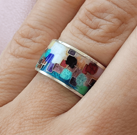 Ring . Cloisonne Emaille,Handgemachte Schmuck, Unikat,Sterling Silber