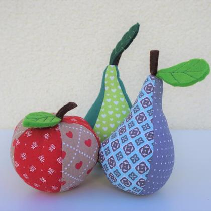 Birnen und Äpfel für den Kaufmannsladen oder auch für die Dekoration im Herbst. Verfügbar sind 4 Birnen und 3 Äpfel. 1 Stück € 7,00, 3 Stück € 18,00
