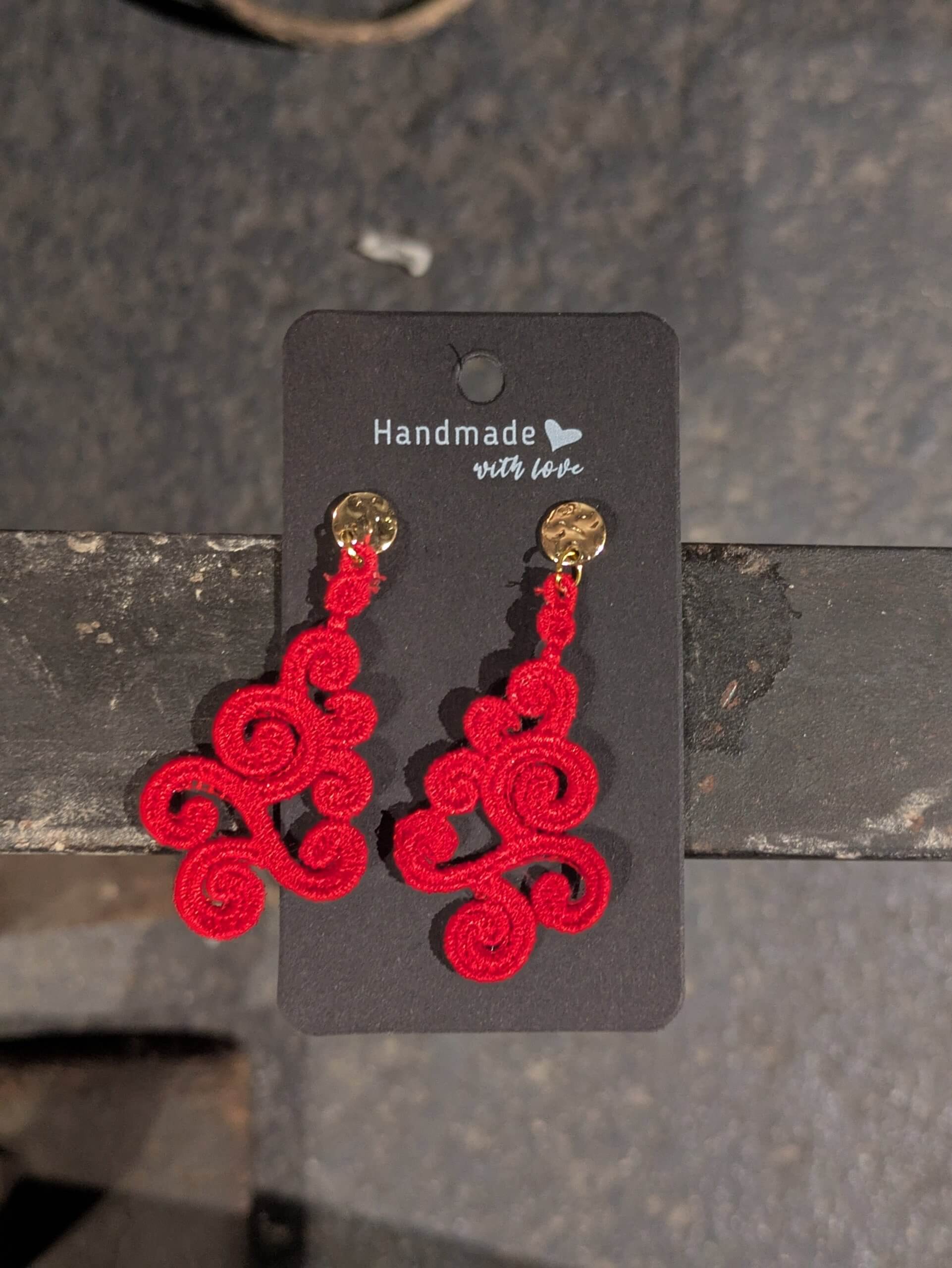 Ohrringe gestickt, sehr leicht, rot.