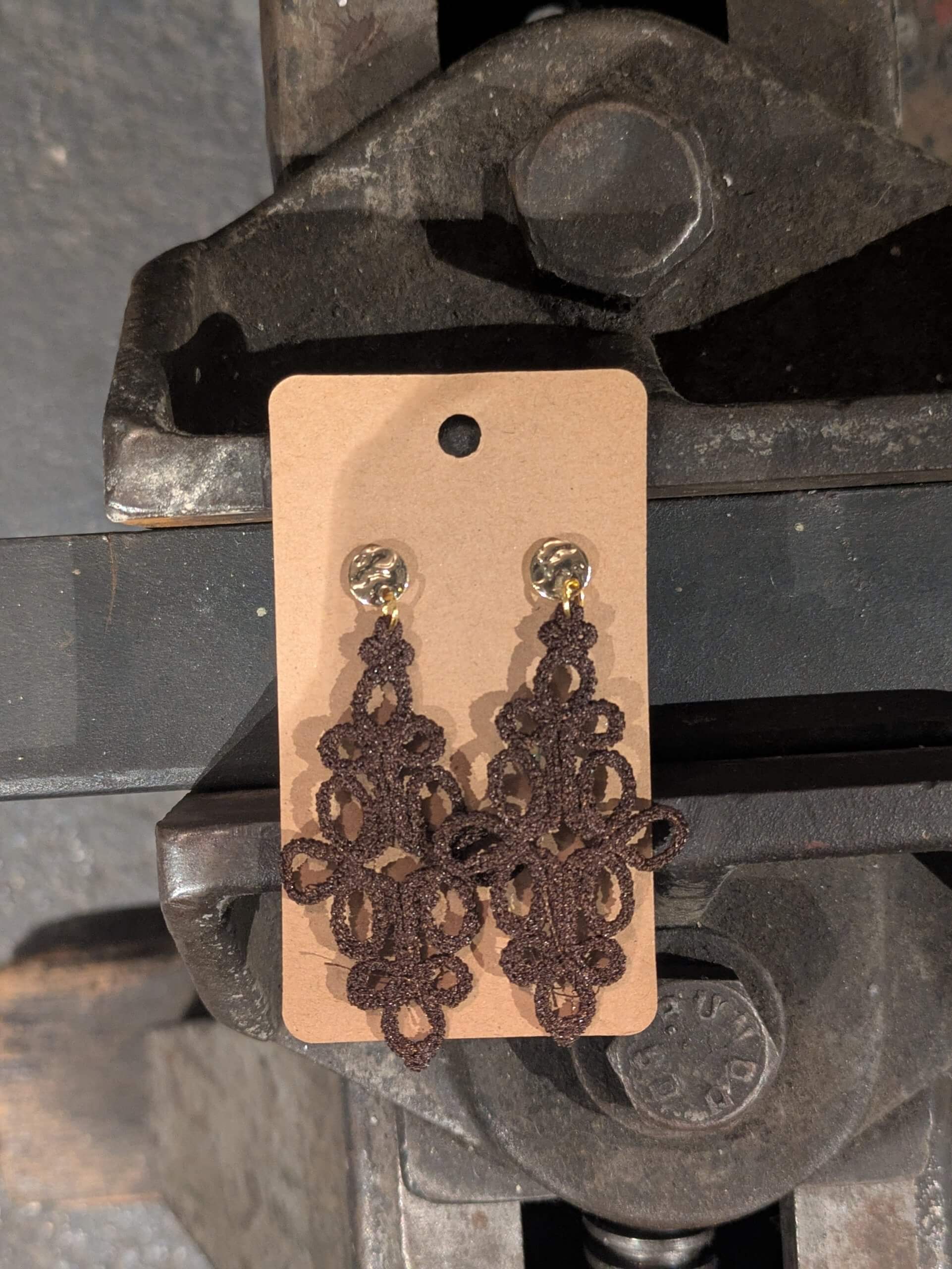Ohrringe, dunkelbraun, gestickt, sehr leicht!