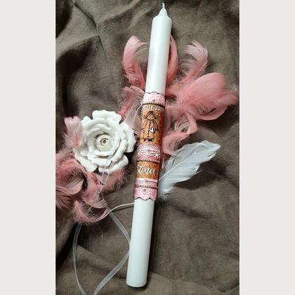 TAUFKERZEN-Set „LINA“ inkl. 1 Schachtel + 1 Untersetzer