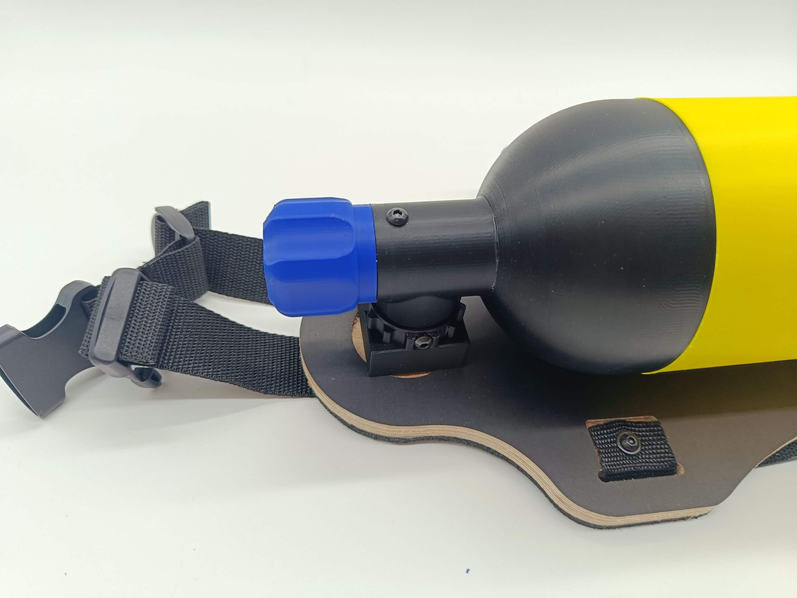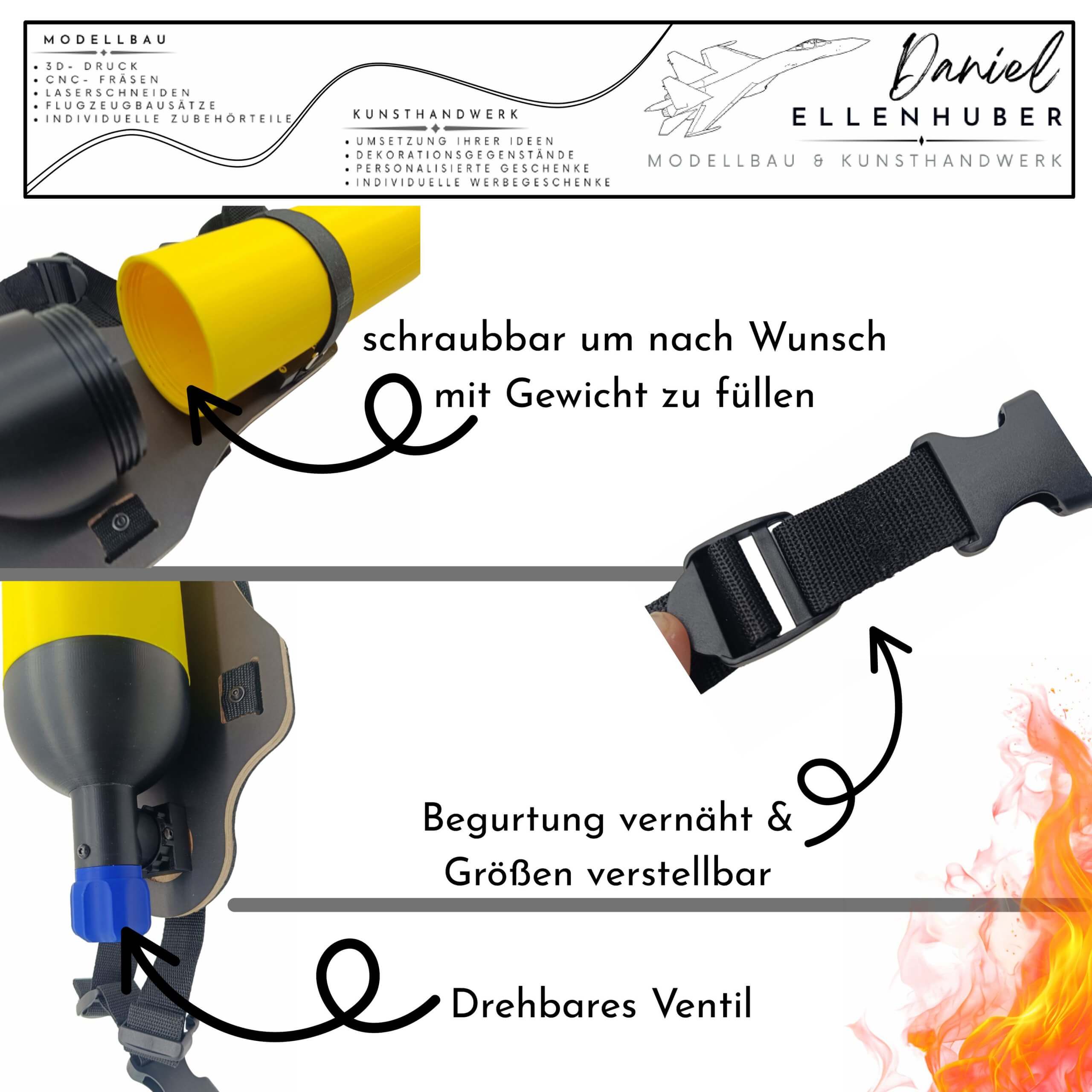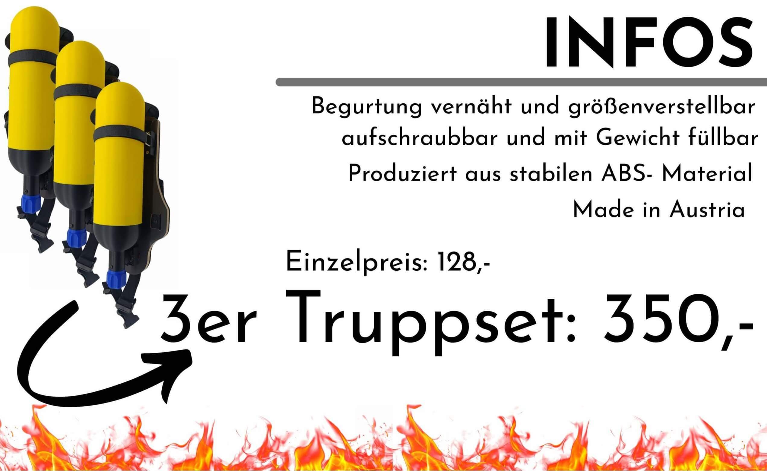 Attrappe eines Atemschutzgerätes, Hergestellt aus hochwertigen Materialien. Vernähte Begurtung. Flasche ist aufschraubbar um etwas Gewicht einfüllen zu können.