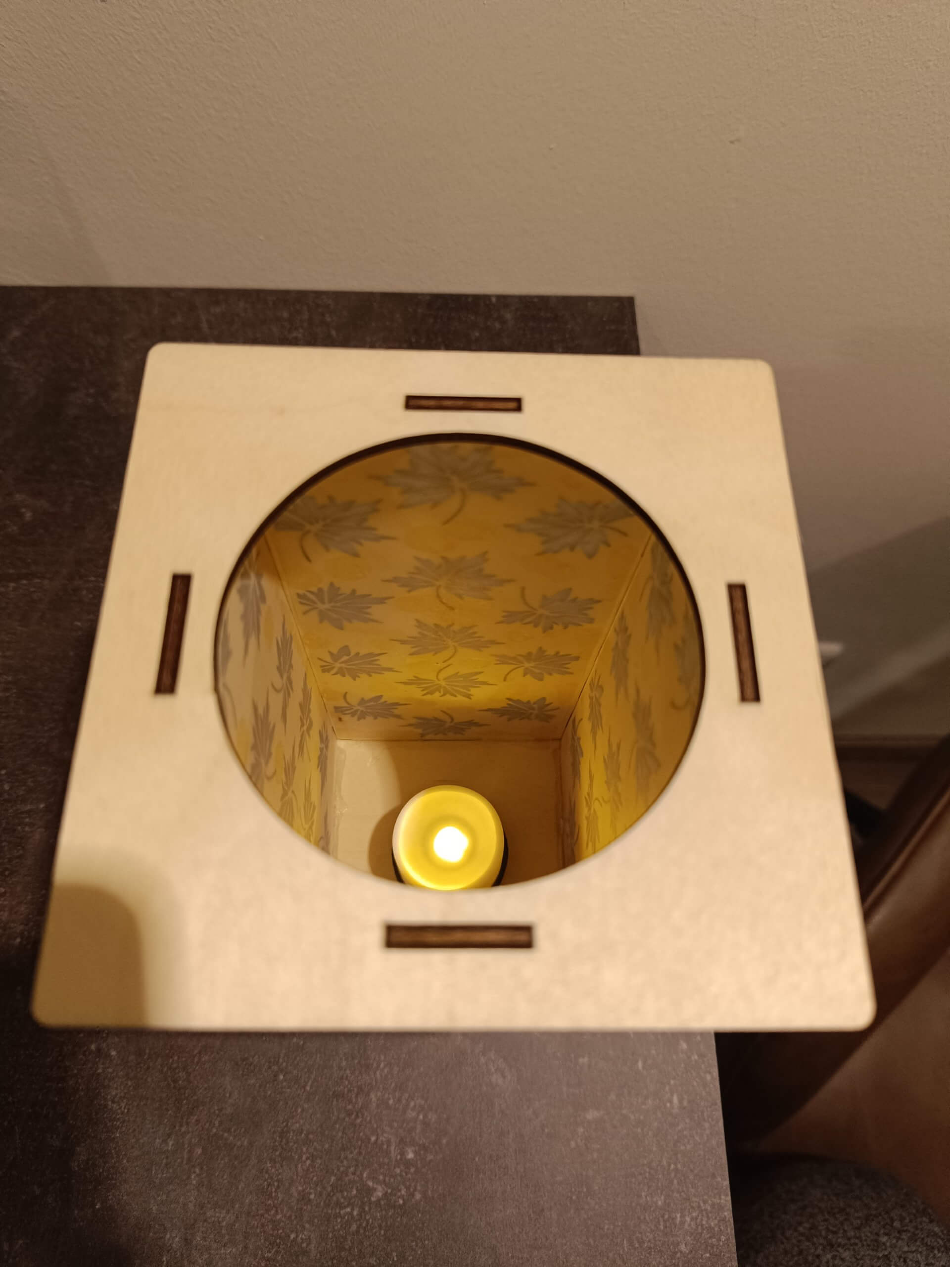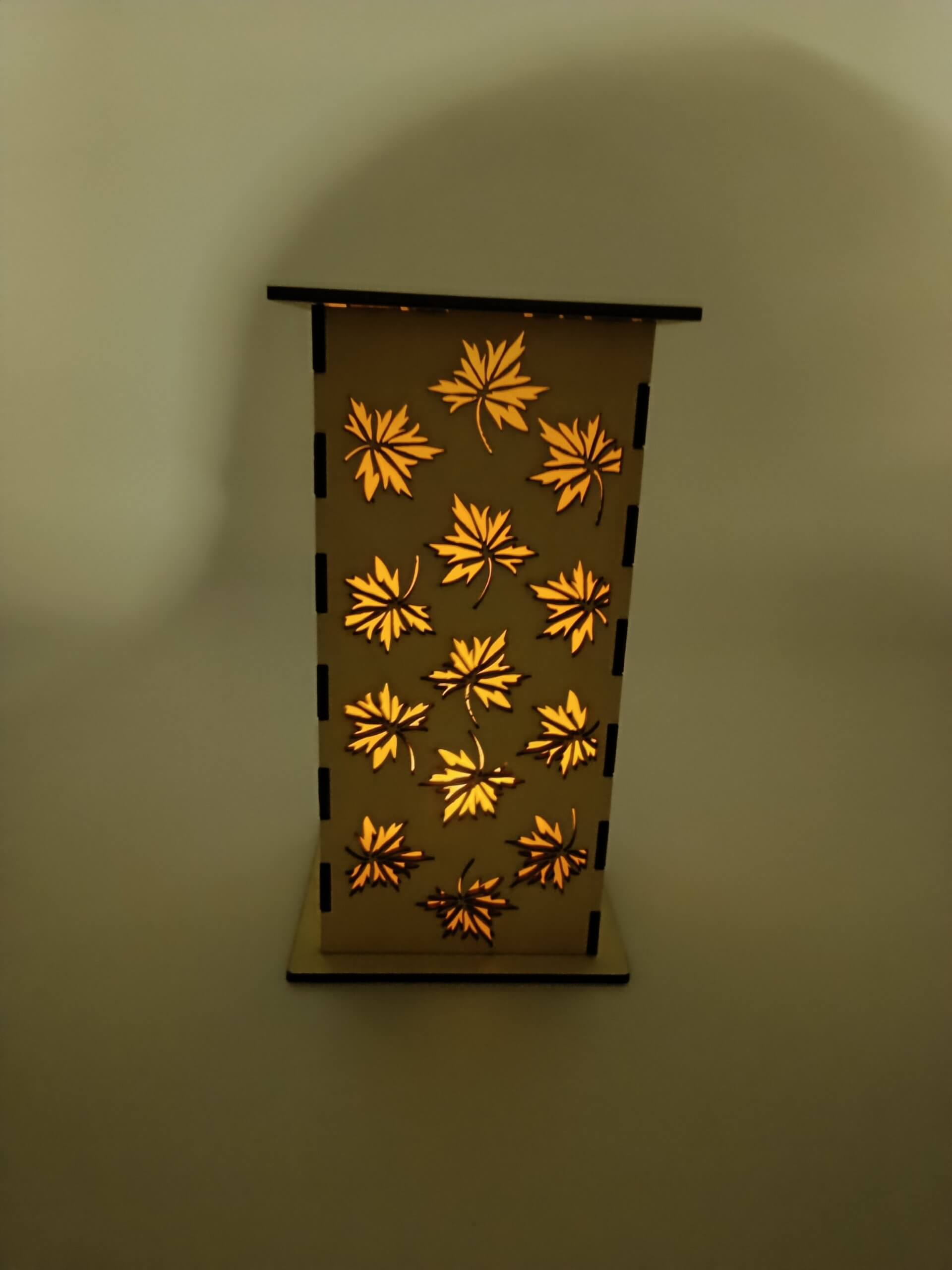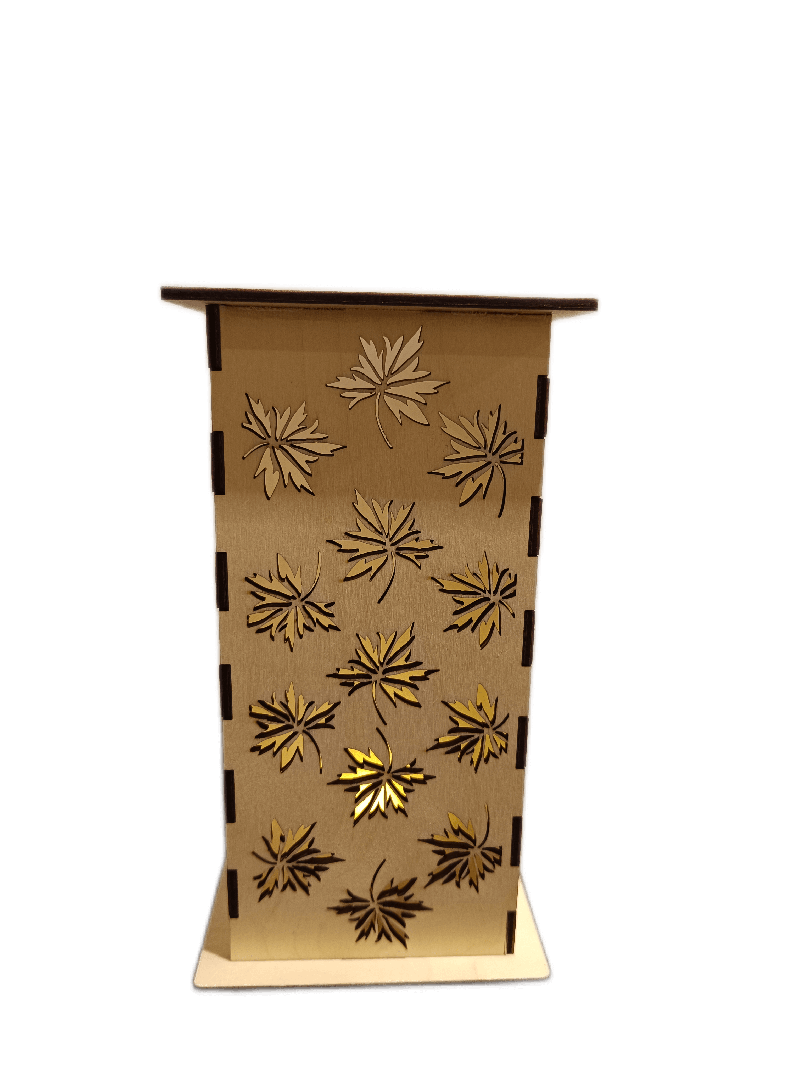 Windlicht Herbstblätter. Aus hochwertigem Birken oder Lindensperrholz. Inkl. Led Lampe mit Timerfunktion. Größe ca. 10,5 x 10,5 x 20 cm.