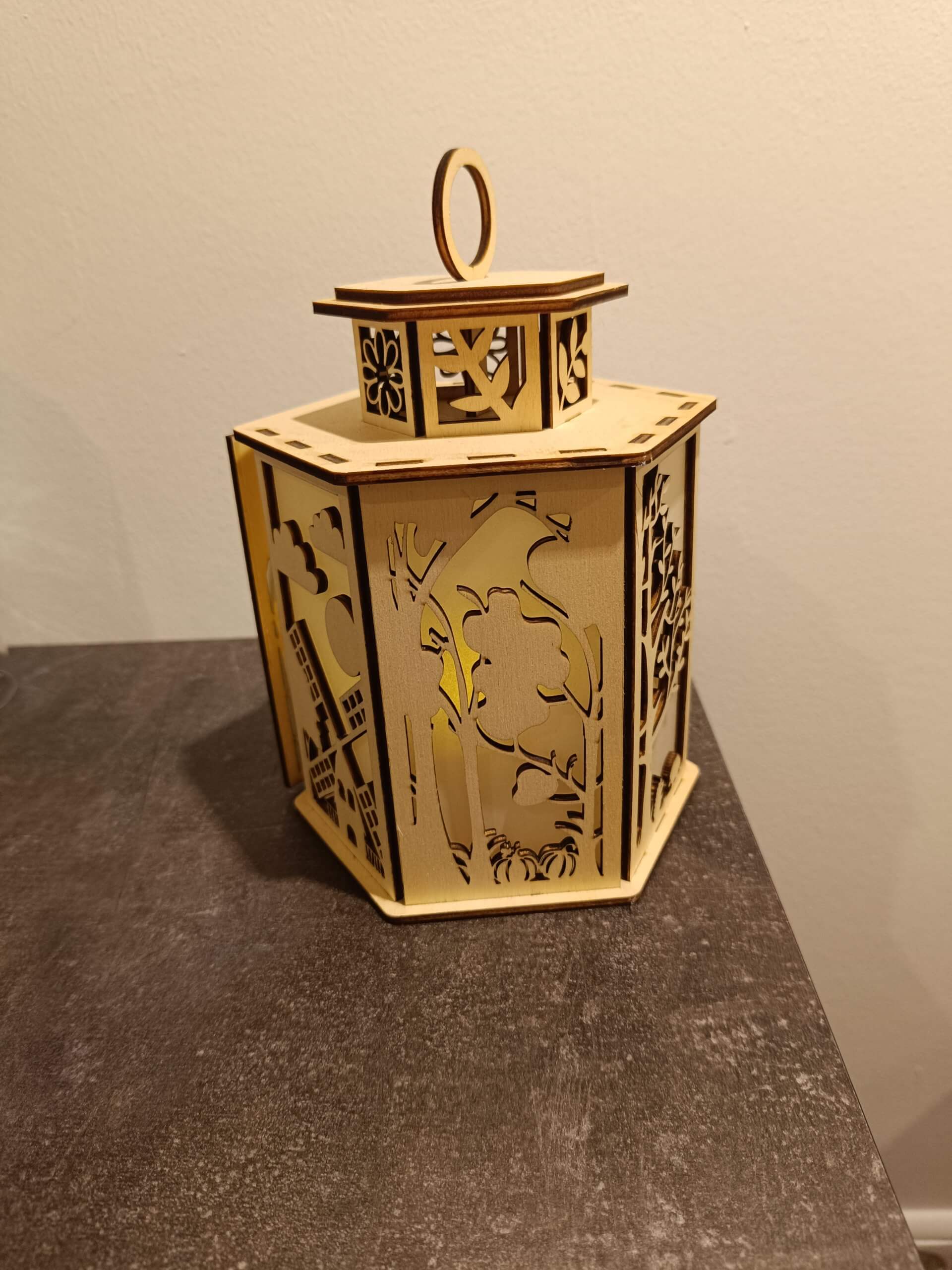 Laterne Herbst verschiedene Motive, siehe Fotos. Aus hochwertigem Birken oder Lindensperrholz. Inkl. Led Lampe mit Timerfunktion. Größe ca. 12 x 12 x 20 cm.