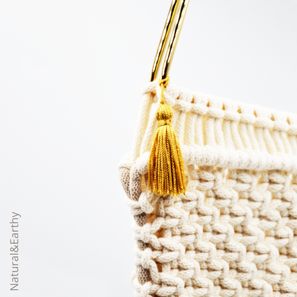 Dieses Produkt wurde Materialien aus hoher Qualität handgefertigt: recycelte Baumwolle (93%), Polyester (5%) und Polyamid (2%) mit einem Kordeldurchmesser von 5mm.OEKO-TEX zertifiziert nach STANDARD 100 (Produktklasse 1). Metall Griffe (H10cm x B14cm) * Breite ca.15cm | Länge ca.54cm * Handwäsche nur in kaltem Wasser