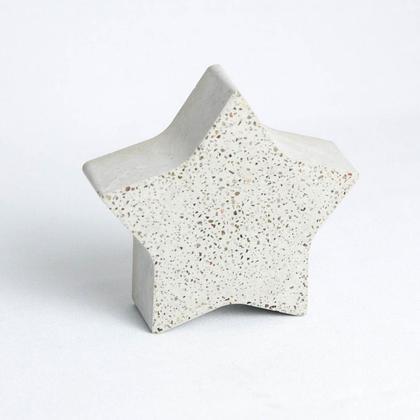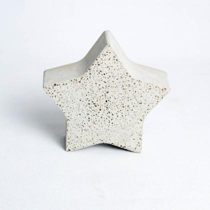 Dieser handgemachte Stern wurde aus hellgrauem Beton hergestellt.