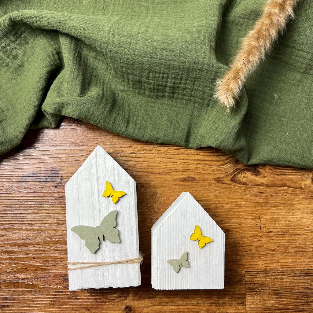 Frühlingshaftes Holzhäuschen mit Schmetterlingen – klein
