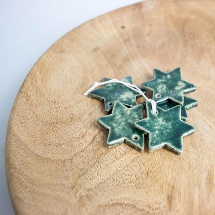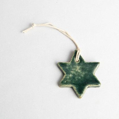 Geschenkanhänger Keramikstern dunkelgrün