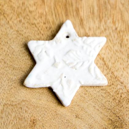 Geschenkanhänger Keramikstern weiß mit Struktur