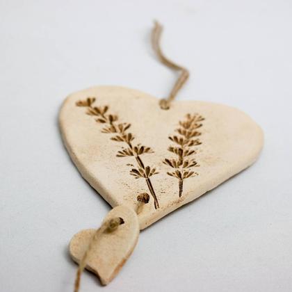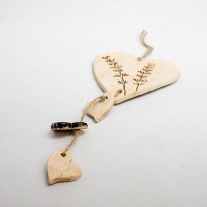 Herzen-Aufhänger aus Keramik mit Pflanzendruck