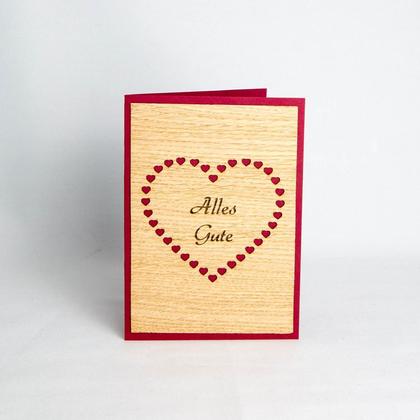 Holz-Karte „Alles Gute“ & Herzen
