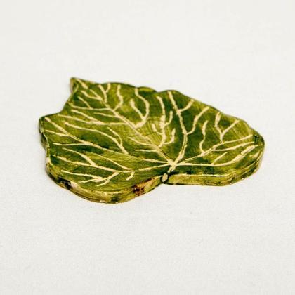 Handgemachtes Keramik Blatt. Der Abdruck stammt von einem Blatt und wurde in den Ton hineingepresst. Das Blatt wurde grün glasiert. Die Ritzen und Vertiefungen wurden freigeritzt. Länge: 8,5cm Breite: 7cm