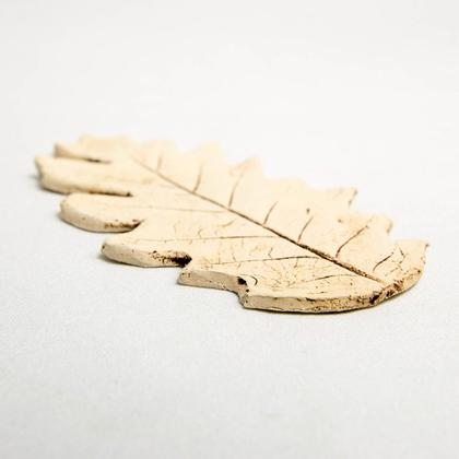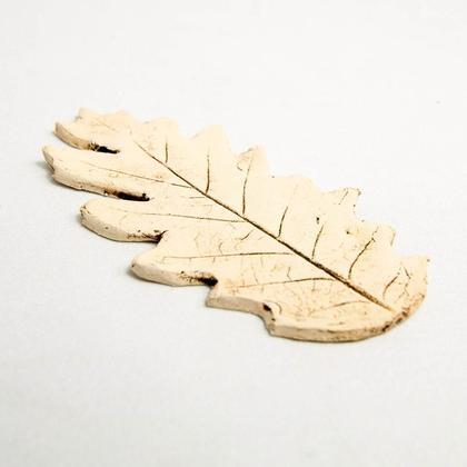 Handgemachtes Keramik Blatt. Der Abdruck stammt von einem Blatt und wurde in den Ton hineingepresst. Die Ritzen und Vertiefungen wurden geschwärzt und dadurch sichtbar gemacht. Länge: 12cm Breite: 6cm