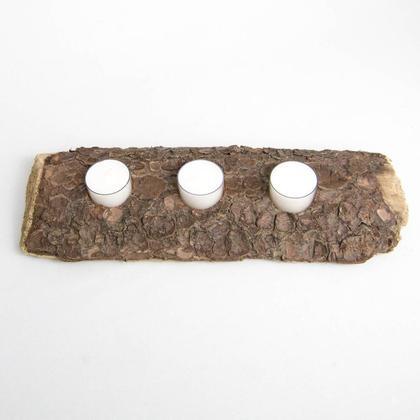 Diese Kerzenhalten wurde aus einem Stück Holz gefertigt, welches an der Außenseite noch von der Rinde bedeckt ist und dadurch einen ganz besonderen Charme hat. Der Kerzenhalter bietet Platz für 3 Teelichter. Länge: 34cm Breite: 12cm