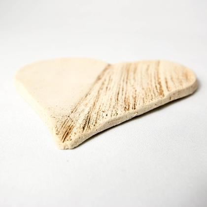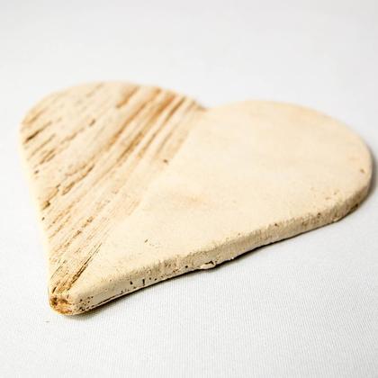 Dieses handgemachte Herz aus Keramik wurde durch Holz-Druck-Muster verziert. Die Vertiefungen wurden geschwärzt und dadurch sichtbar gemacht. Durchmesser: 11,5cm