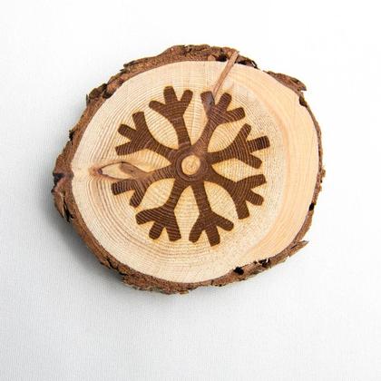 Die Astscheibe wurde durch eine eingebrannten Schneeflocke verziert. Die Scheibe kann als Geschenkanhänger, Christbaumschmuck oder ohne Aufhänger auch als Streudeko verwendet werden. Durchmesser: ca. 6-8cm Bitte beachte, dass jede Holzscheibe ein wenig anders ist, da sie alle Naturmaterialien sind.
