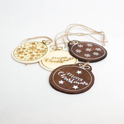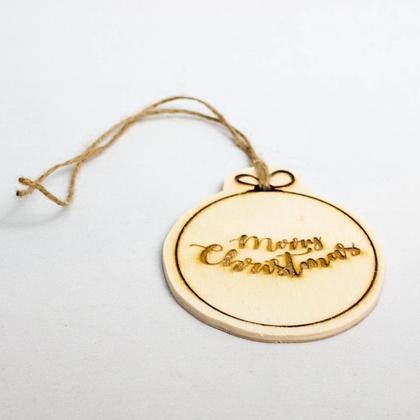 Dieser kleine Holz-Christbaumkugel-Anhänger peppt jedes Weihnachtsgeschenk auf. Der Anhänger ist per Hand ausgesägt und geschliffen. Mit dem Laser wurden der Schriftzug "Merry Christmas" bzw. die Sterne und Schneeflocken in den Anhänger eingraviert. Als Aufhänger dient eine Baumwollkordel. Der Anhänger kann auch gerne als Christbaumschmuck verwendet werden. Durchmesser: 7cm