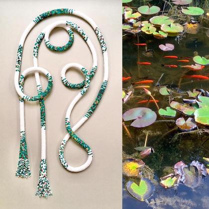 Länge des Gürtels 212cm In dieser traditionellen Technik des Häkelns von Glasperlen werden für diesen Gürtel Glasperlen nach einem von mir entworfenen Muster auf ein Baumwollgarn gefädelt. Jede gefädelte Perle wird schließlich einzeln zu einem Schlauch gehäkelt. Die Enden des Gürtels sind Tulpenförmig mit Quasten. Der Durchmesser des Gürtels beträgt etwa einen Zentimeter. In einem milden Seifenbad lässt sich der Gürtel reinigen. Bringen Sie bitte Ihre Hautpflege (Parfum) nicht in direkten Kontakt mit den Glasperlen.