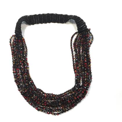 Troja, die sagenumwobene Stadt, hat mich zu dieser Serie von Halsketten inspiriert. Fließende Stränge von Glasperlen auf Baumwollgarn bilden diesen Halsschmuck. Ohne Verschluss wird die Halskette über den Kopf gezogen. In einem milden Seifenbad lässt sich der Schmuck reinigen. Bringen Sie bitte Ihre Hautpflege sowie Parfum nicht in direkten Kontakt mit den Glasperlen.